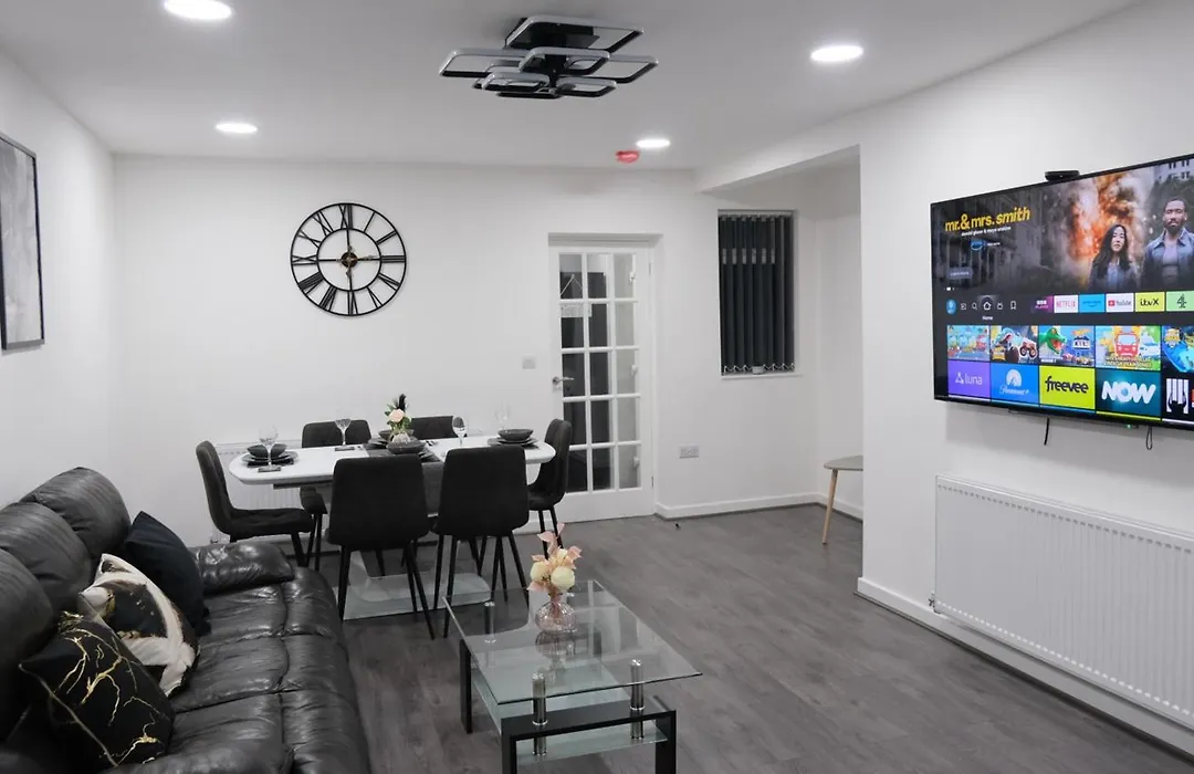 L'arredamento interno è dotato di un divano e una scrivania e di una TV a schermo piatto con canali satellitari. Etihcity - 3 Bedroom Semi - Free Parking Near Etihad Stadium, Tourist Attractions, Manchester City Centre, Transport And Motorway Links Next To Mcdonald'S - Sky N Netflix ha 3 camere da letto e 1 bagno. Questa villa offre un bagno alla francese, una vasca da bagno e una doccia, oltre a comfort come asciugacapelli e teli da bagno.